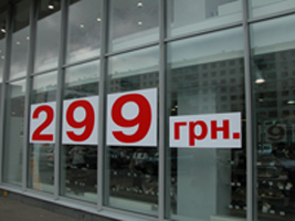 6) Шрифтове рішення зводилося до вибору шрифту, який асоціювався б із видом діяльності фірми - надійно так асоціювався, як рейка з паровозом. Для всього, пов'язаного з Україною або з горілкою, ідеально підходив шрифт Granit , для релігійної тематики - Izhitsa, для всього східного - Arabia, для шиномонтажів - Futura (у неї така чудова, жирненька, ідеально кругла буква О!), для бутіків і салонів - тільки дворянські курсиви подібне до ArtScript або Boyarsky, для всього іншого - Tahoma. Використання шрифту Tahoma відрізняло істинних професіоналів дизайну. Недосвідчені неофіти в таких випадках писали Прагматикою або Аріалом. Ви зможете відрізнити на погляд Тахому від Прагматики? Ні? Що ж, Вам є ще чому навчатися в дизайні!