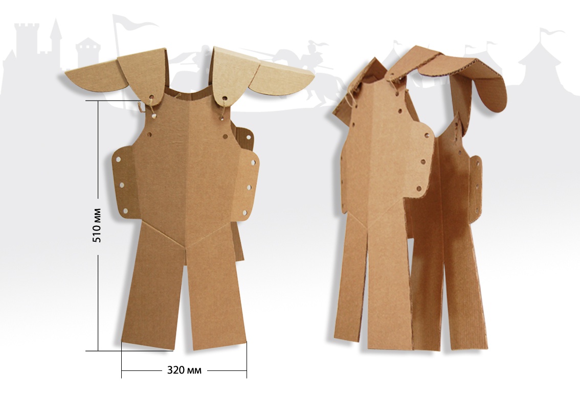 Відтворити атмосферу в грі, що приносить користь хоча б тому, що ця гра реальна: сприяє і фізичному та внутрішнього розвитку, допоможуть унікальні лицарські обладунки і шолом, виконані з високоякісного гофрокартону. Екологічність, легкість і безпека цих виробів порадують батьків. Ну, а юні лицарі цілком зможуть отримувати задоволення від розвиваючої гри і відчувати себе справжніми чоловіками.