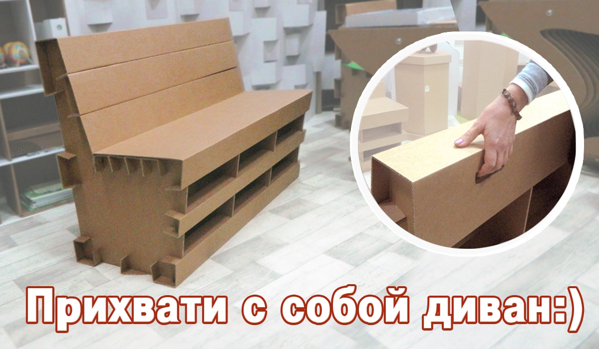 У нас новинка: диван з гофрокартону, який приємно здивує і порадує кожного. Варто тільки присісти ... Звичні лавки відходять у небуття і відступають на задній план, перед респектабельністью і функціональністю дивана "Техно", недавно представленого командою наших розробників картонної продукції.