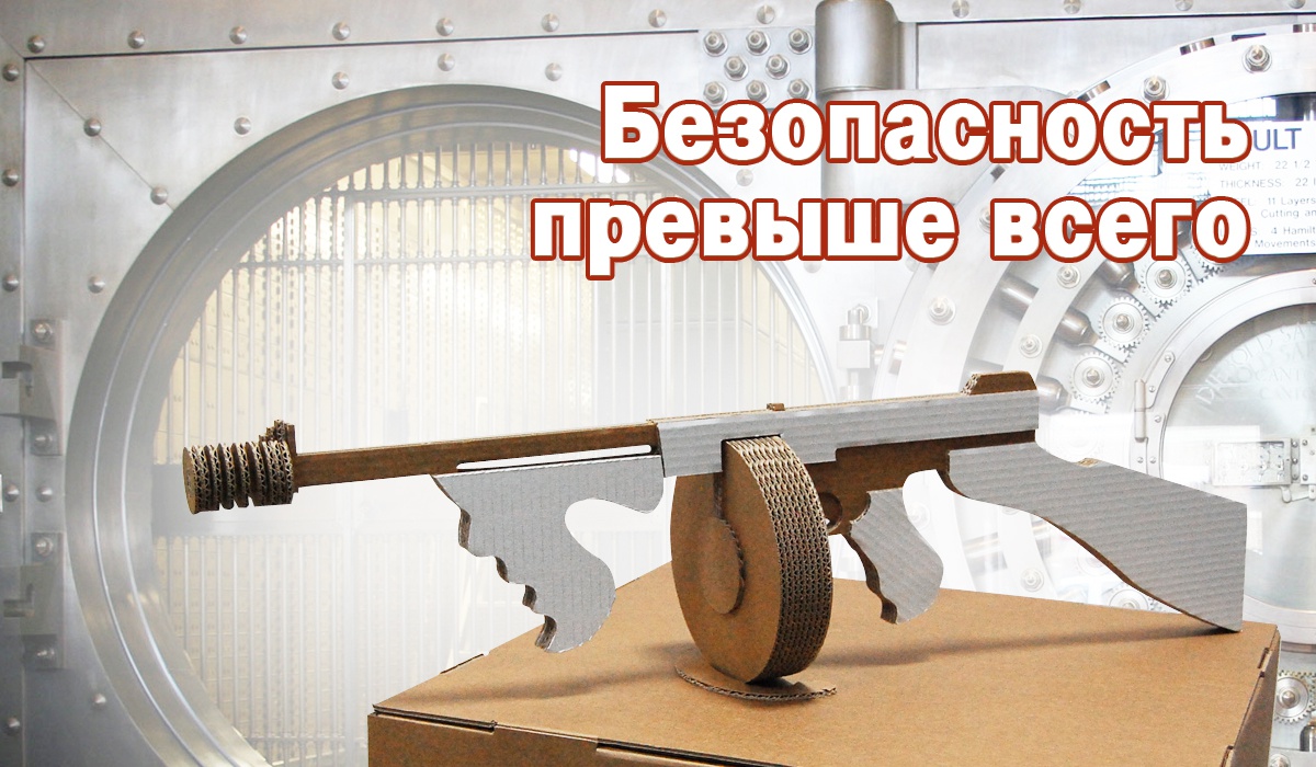 Наш автомат Томпсона абсолютно безпечний, тому що виконаний з гофрокартону.